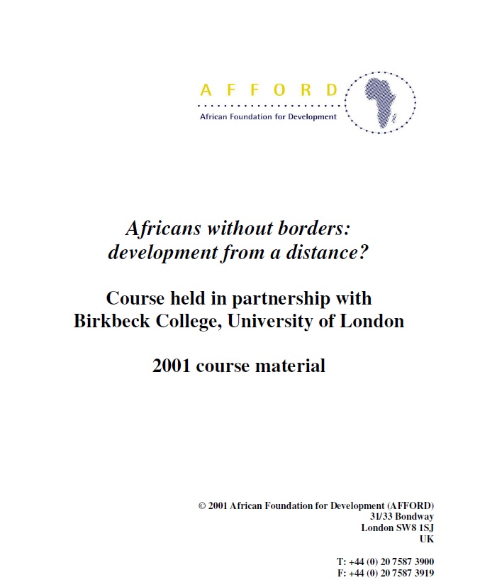 In 2001 AFFORD taught a course for students at Birkbeck university thinking about the varied diasporic contributions to development.
